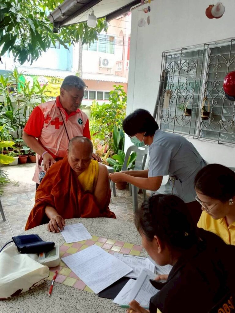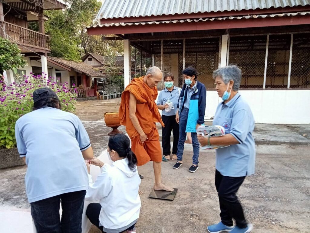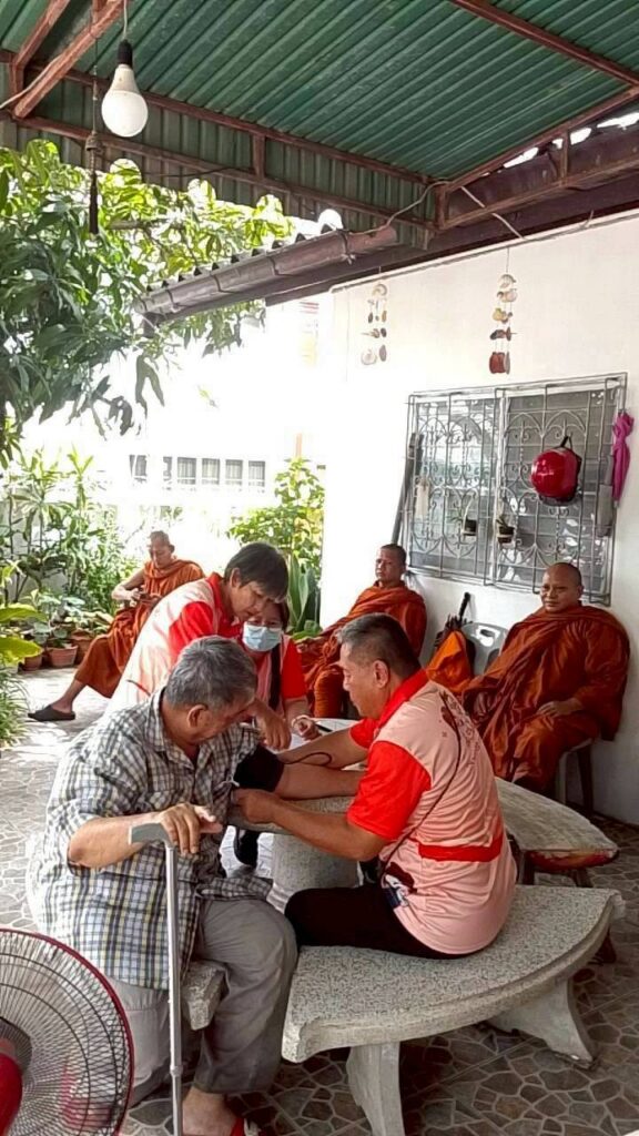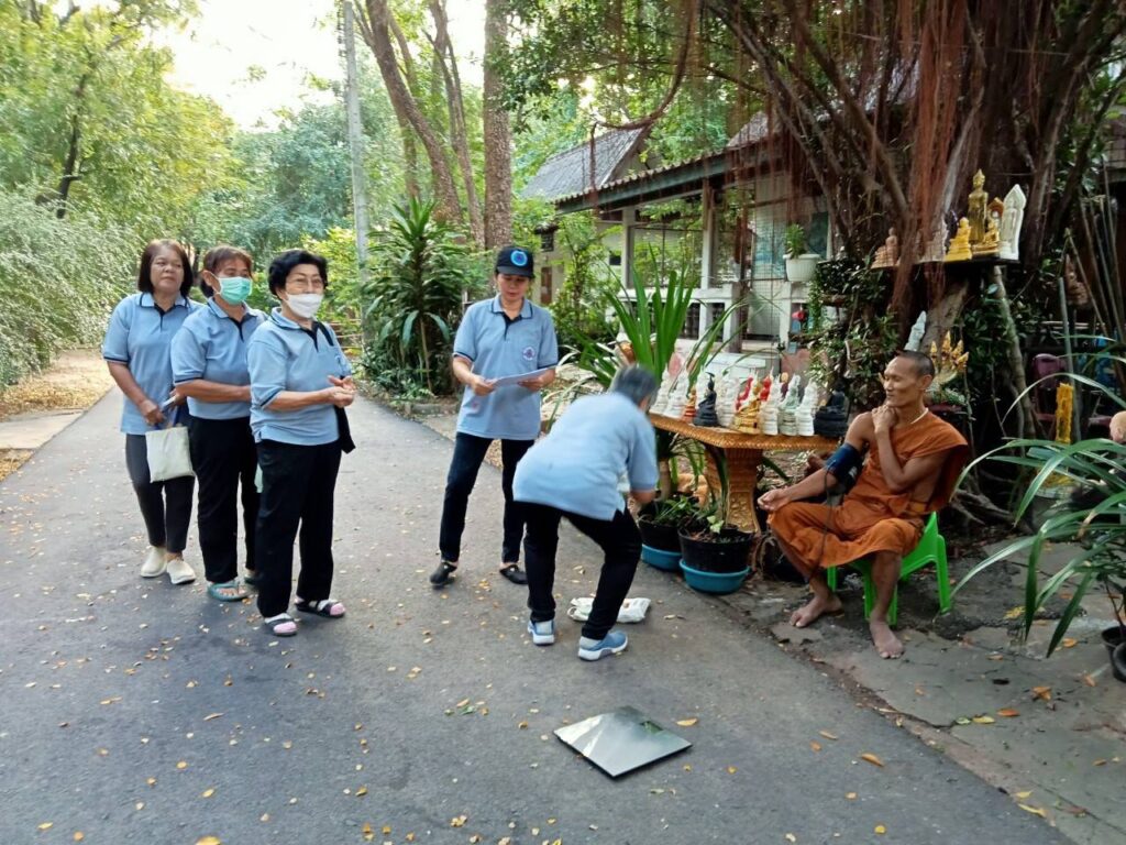 • ซักประวัติสุขภาพ เพื่อเฝ้าระวังโรคไม่ติดต่อเรื้อรัง (NCDs) เช่น เบาหวาน ความดันโลหิตสูง และโรคหัวใจ - การถวายความรู้ด้านสุขภาพพระสงฆ์