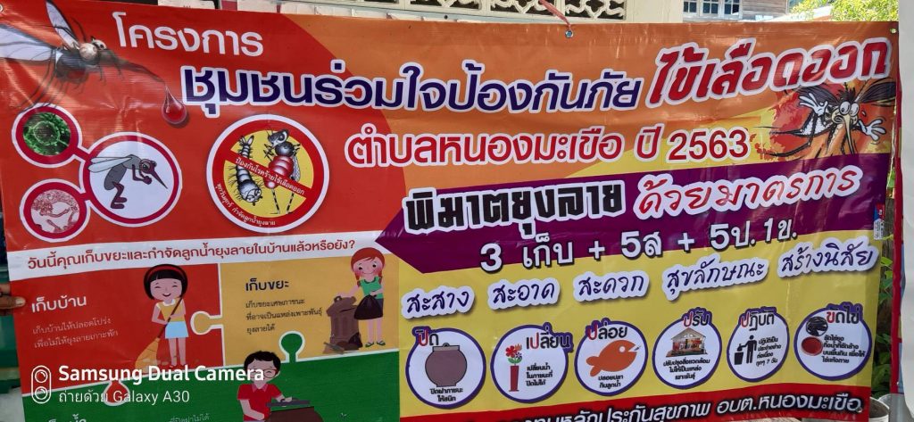 วันที่ 15-16 กันยายน 63 รพ.สต.หนองมะเขือร่วมกับอบต.หนองมะเขือ ออกประชาคม ชุมชนต้านภัยไข้เลือด โดยดูแลสิ่งแวดล้อม ใส่ทรายอะเบทและให้สุขศึกษา ในชุมชน จำนวน 9 หมู่บ้าน