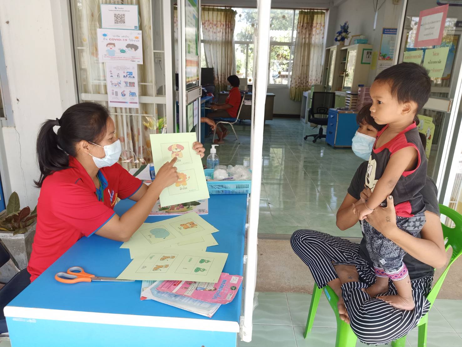ตรวจพัฒนาการเด็ก Posted on 28/01/2021 by Admin วันที่ 27 มกราคม 2564 เจ้าหน้าที่ รพ.สต.โคกสง่า ได้ให้บริการตรวจคัดกรองพัฒนาการเด็ก DSPM แก่เด็กในเขตรับผิดชอบ เพื่อตรวจสอบพัฒนาการของเด็กว่าสมวัยหรือไม่ พบสงสัยล่าช้าด้านภาษา 1 ราย จึงให้คำแนะนำและทำบัตรภาพฝึกการออกเสียงเพื่อให้ผู้ปกครองไปกระตุ้นฝึกเด็กที่บ้านต่อ และนัดติดตามผลทุก 1 สัปดาห์