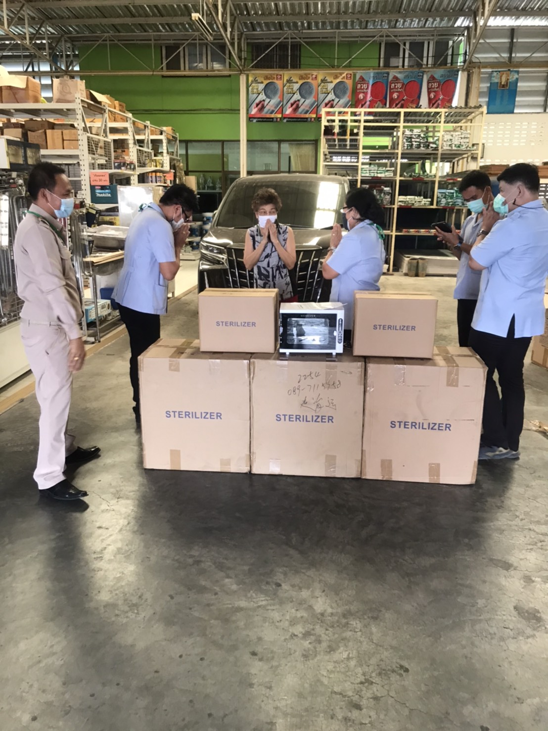 รับมอบเครื่องอบฆ่าเชื้อ Posted on 26/04/2021 by Admin วันที่ 26 เมษายน 2564 นางทัศนีย์ ทินราช สาธารณสุขอำเภอพล พร้อมด้วยคณะเจ้าหน้าที่รับมอบเครื่องอบฆ่าเชื้ออุปกรณ์ โรงหล่อวีเค จำนวน 10 เครื่อง นิภาภรณ์วัสดุ จำนวน 6 เครื่อง คุณพศุฒม์ บานแย้ม กรุงเทพฯ มอบชุด PPE จำนวน 60 ชุด เจลล้างมือ จำนวน 6 ขวด เพื่อส่งมอบให้ทาง โรงพยาบาลส่งเสริมสุขภาพตำบล ใช้ทำความสะอาดเครื่องมือทางการแพทย์ต่อไป จึงขอขอบพระคุณมา ณ. ที่นี้ครับ