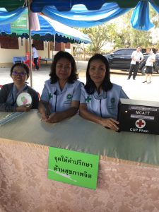 เจ้าหน้าที่ พนักงาน สาธารณสุขอำเภอ เจ้าหน้าที่ รพ.สต. ร่วมต้อนรับท่านนายอำเภอพล ท่านศิริวัฒน์ พินิจพานิชย์ ประธานในกิจกรรมหน่วยแพทย์เคลื่อนที่ และ อำเภอยิ้ม พร้อมให้บริการทางการแพทย์ ให้คำปรึกษา แก่ประชาชนที่เข้าร่วมกิจกรรม