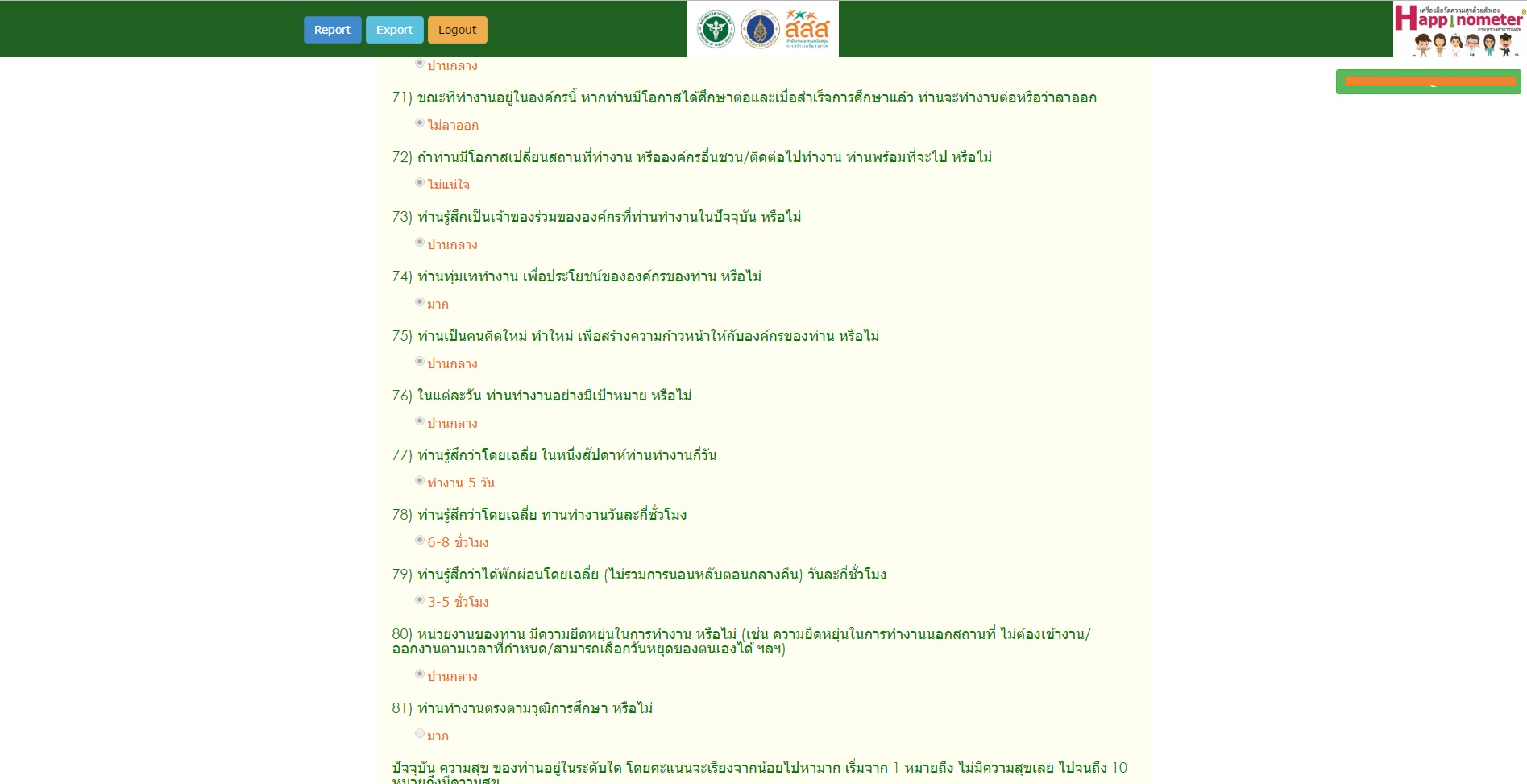 4.เริ่มทำแบบสอบถาม โดยมีข้อมูลทั่วไป และ happinometer จำนวน 69 ข้อ